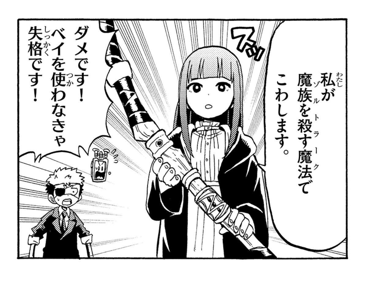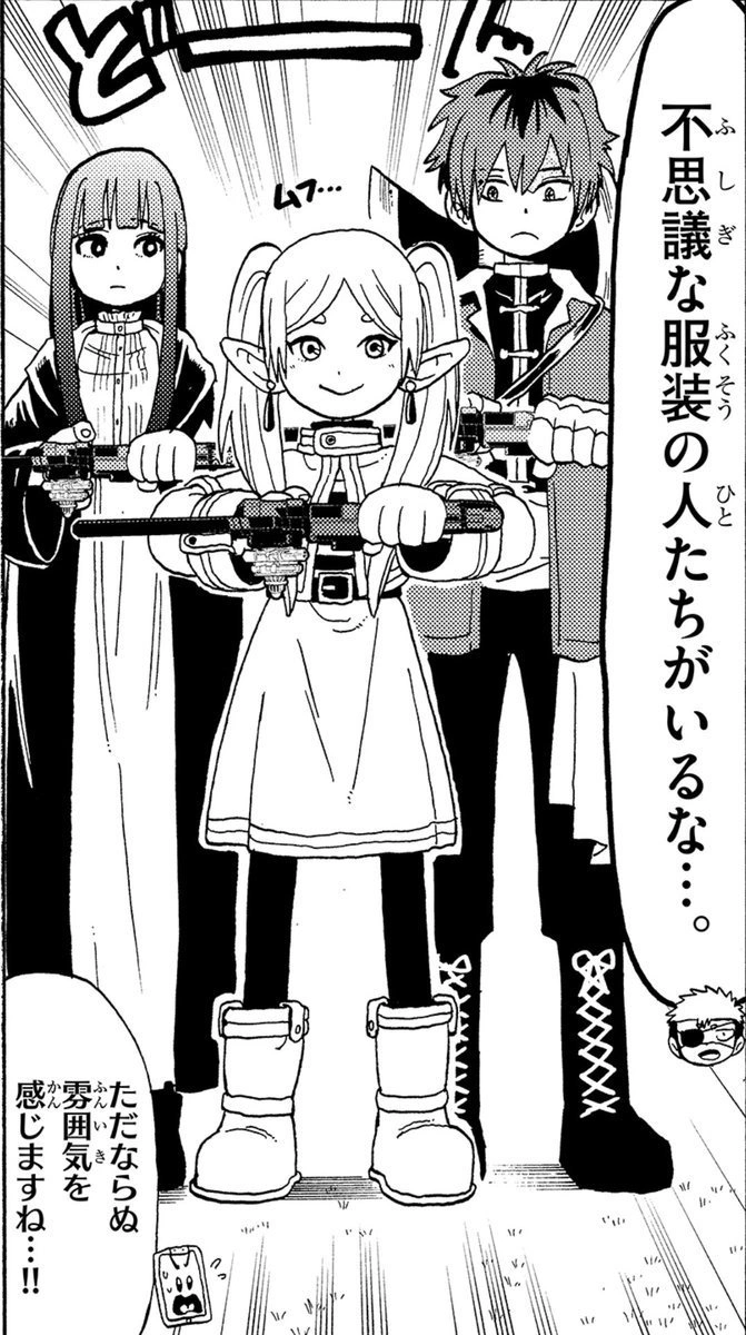 Небольшая реклама в виде комиксов о Фрирен, Ферн и Штарке, играющих с Бейблэйдами.