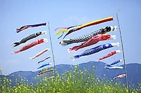 В этот день особые почести получают дети до 15 лет, составляющие сегодня чуть более 11% населения Японии. Перед вами — украшение для Праздника мальчиков (ныне День детей). Для них украшают дома, вывешивая карпов-коинобори, символизирующих силу и целеустремленность.