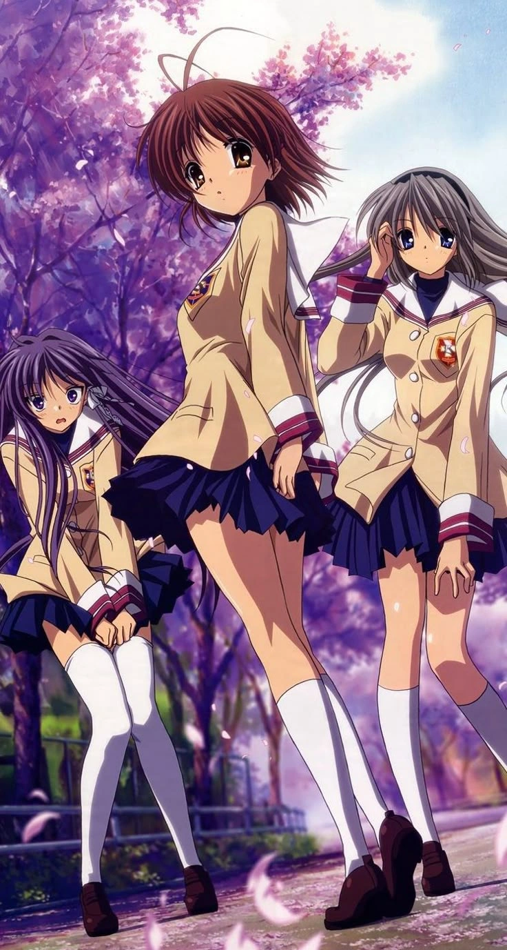 Сюжет: Томоя Окадзаки — ученик старшей школы, потерявший интерес к жизни. Однако встреча с застенчивой Нагиса Фурукава меняет всё. Вместе они начинают искать смысл в школе и жизни. Это аниме — трогательная драма, которая сначала вызывает улыбки, а затем заставляет плакать.