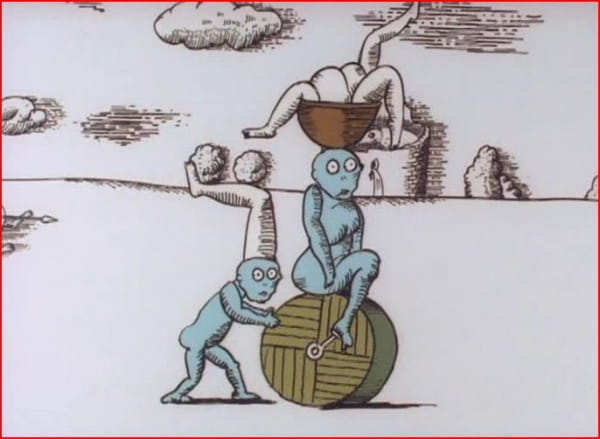 В этом короткометражном фильме 1972 года изображен фантастический мир, где сосуществуют люди, динозавры и другие невероятные создания. Поведение персонажей временами граничит с безумием и кажется ужасающе безрассудным.
