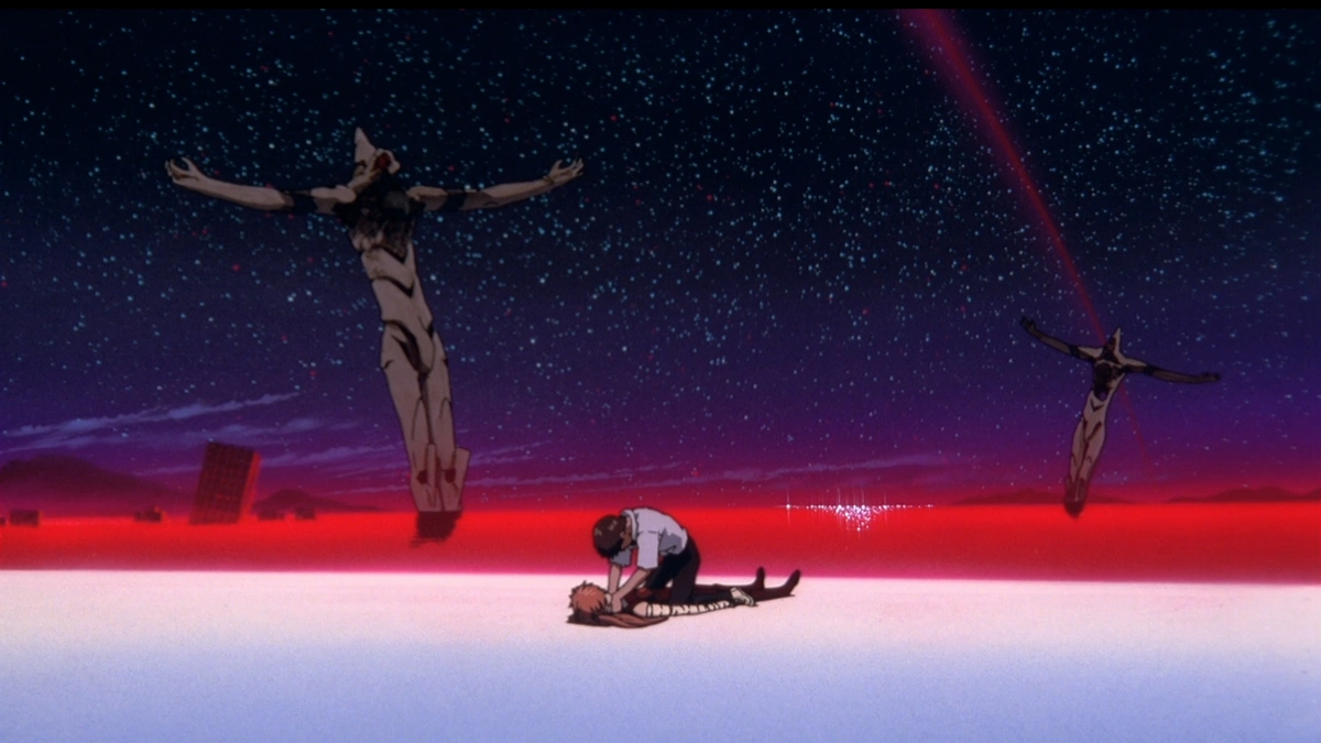 «Конец Евангелиона», альтернативная концовка культового меха-аниме 1995 года «Евангелион нового поколения» от Хидэаки Анно, предлагает мрачный и неопределенный финал истории. Если оригинальный сериал заканчивался на непонятной, но всё же обнадеживающей ноте, то «Конец Евангелиона» — это апокалиптическое завершение истории Синдзи, гораздо более взрослое и мрачное переосмысление сюжета с самого начала.
