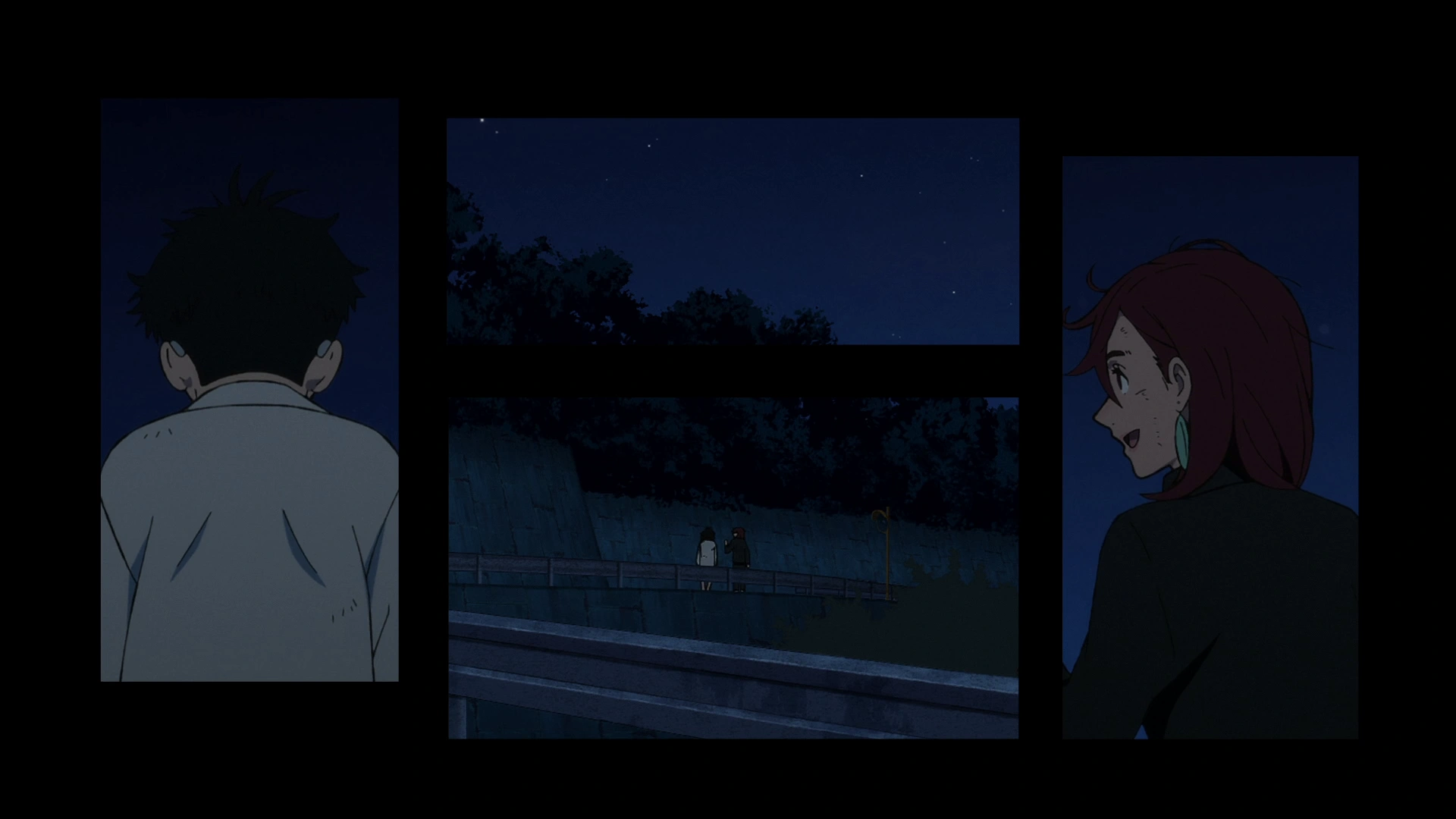 Ещё одно новаторское решение Ямасиро — использование фреймов. В начале второй серии он делит экран на несколько частей во время простой прогулки героев. Это придаёт даже тихим моментам движения, не давая зрителям расслабиться и привнося больше динамики в, казалось бы, обычную беседу.