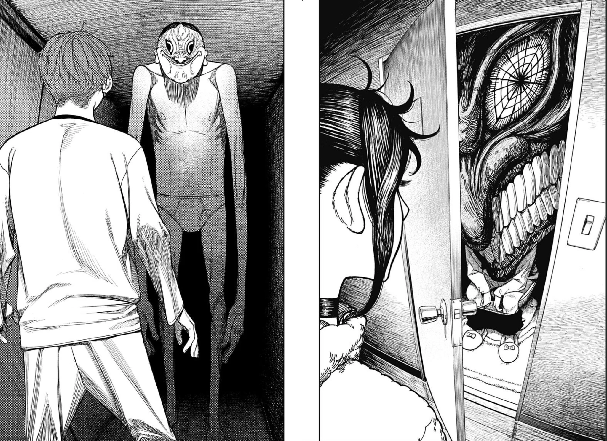 Тем временем, ужасные, детализированные монстры в манге напоминают творения мастера хоррора Дзюндзи Ито, а динамичные ракурсы и перспективы каждой панели погружают читателя в хаотичный и странный мир.