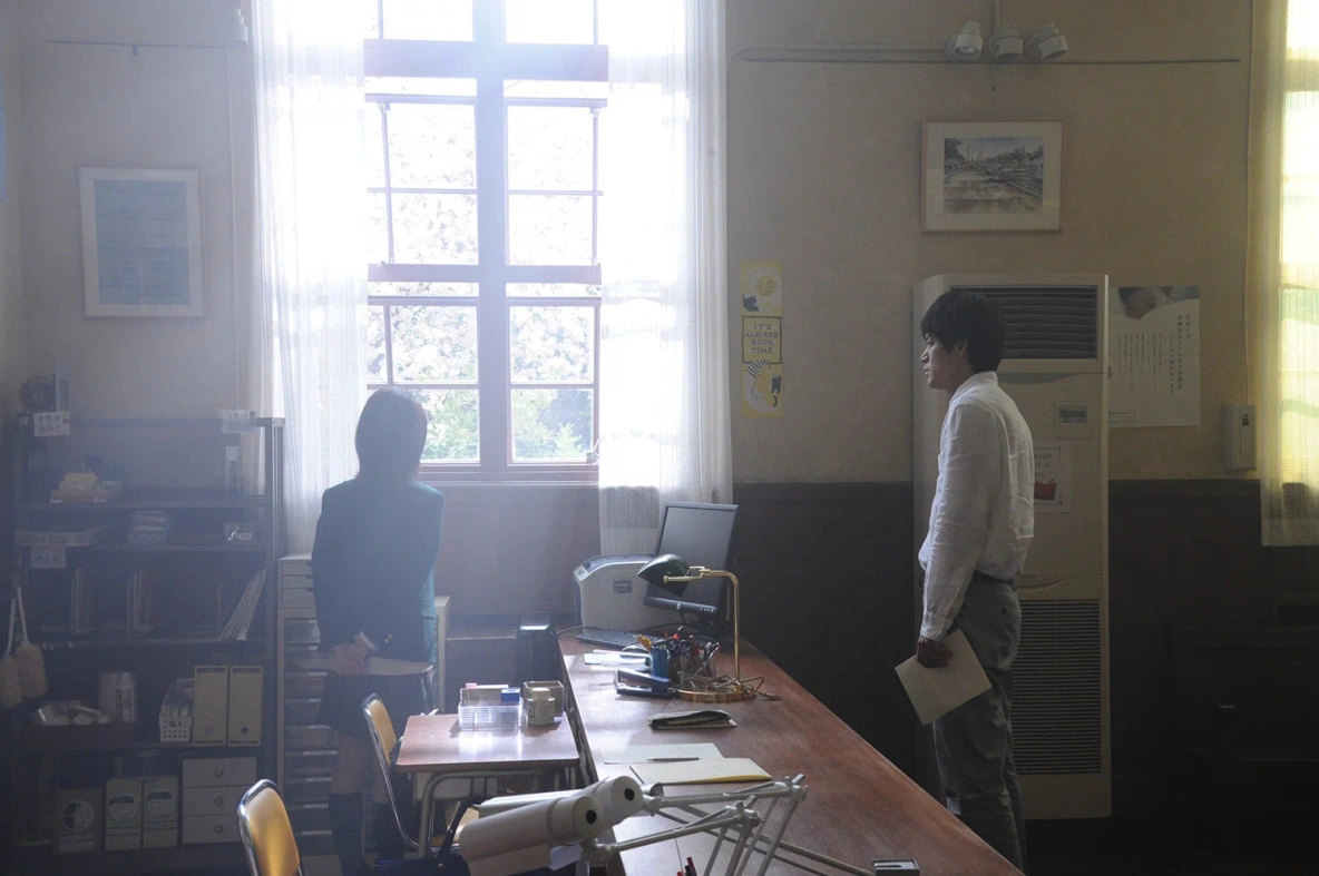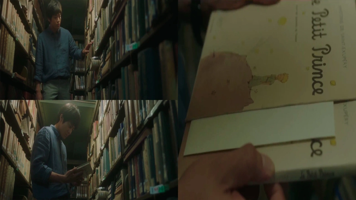 То самое последнее (секретное) напутствие, которое Харуки получает, когда ему отдают дневник Сакуры, создатели дорамы перенесли (чтобы работало их «новаторство») в её письмо, которое она, прямо перед своей неожиданной смертью, спрятала в книге («Маленький принц»), которую в свою очередь спрятала в школьной библиотеке, где они оба работали. И, возможно, это даже более подходящий ход для игрового фильма, ведь здесь не будут работать те же инструменты, что и в аниме версии (там есть потрясающая сцена «Маленький принц», но об этом в секторе про аниме), и, опять-таки, помогает работать «новаторству».