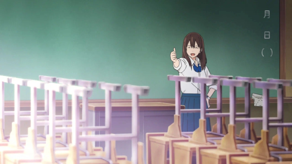 2) В лайв-экшне, опять-таки, лучше проработаны и представлены связи между персонажами, и особенно выделяются второстепенные (всё тот же одноклассник-жвачка, заимевший больше экранного времени), в частности Кёко, которая в «новаторстве» и вовсе вышла на первые планы; также отмечу того старосту-бывшего-парня, что приобрёл в себе и своих действиях больше смысла.