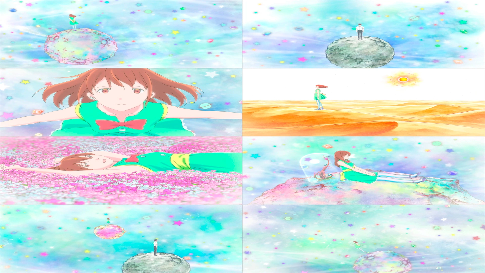 Это, пожалуй, очевидно, но она есть только в аниме-версии, поскольку, опять-таки очевидно, она бы совсем не работала в игровом кино. В моём эссе про «Твой цвет» от Наоко Ямады я говорил, что в анимации гораздо больше инструментов и способов их использования. Поэтому, даже несмотря на «новаторство» в дораме, которое, стоит признать, дала если не картине, то истории, новую грань, «Маленький принц» связывает все сюжетные линии, всех персонажей и их композиции воедино и одновременно открывает (раскрывает) их друг для друга до самого конца.