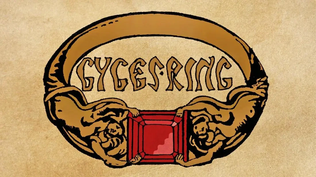 В философском труде «Государство» Платона эта история поднимает множество вопросов о природе справедливости. Персонаж Главкон рассказывает эту притчу, чтобы доказать, что справедливость — это всего лишь вид социального контракта, который мешает людям вредить друг другу. Этот мысленный эксперимент призван показать, что люди по-настоящему ценят справедливость только за её способность делать их самих добропорядочными в глазах общества. Другими словами, вполне естественно, что кто-то с кольцом невидимости будет вести себя как негодяй, ведь люди ценят справедливость и мораль лишь тогда, когда их действия могут быть подвергнуты осуждению.