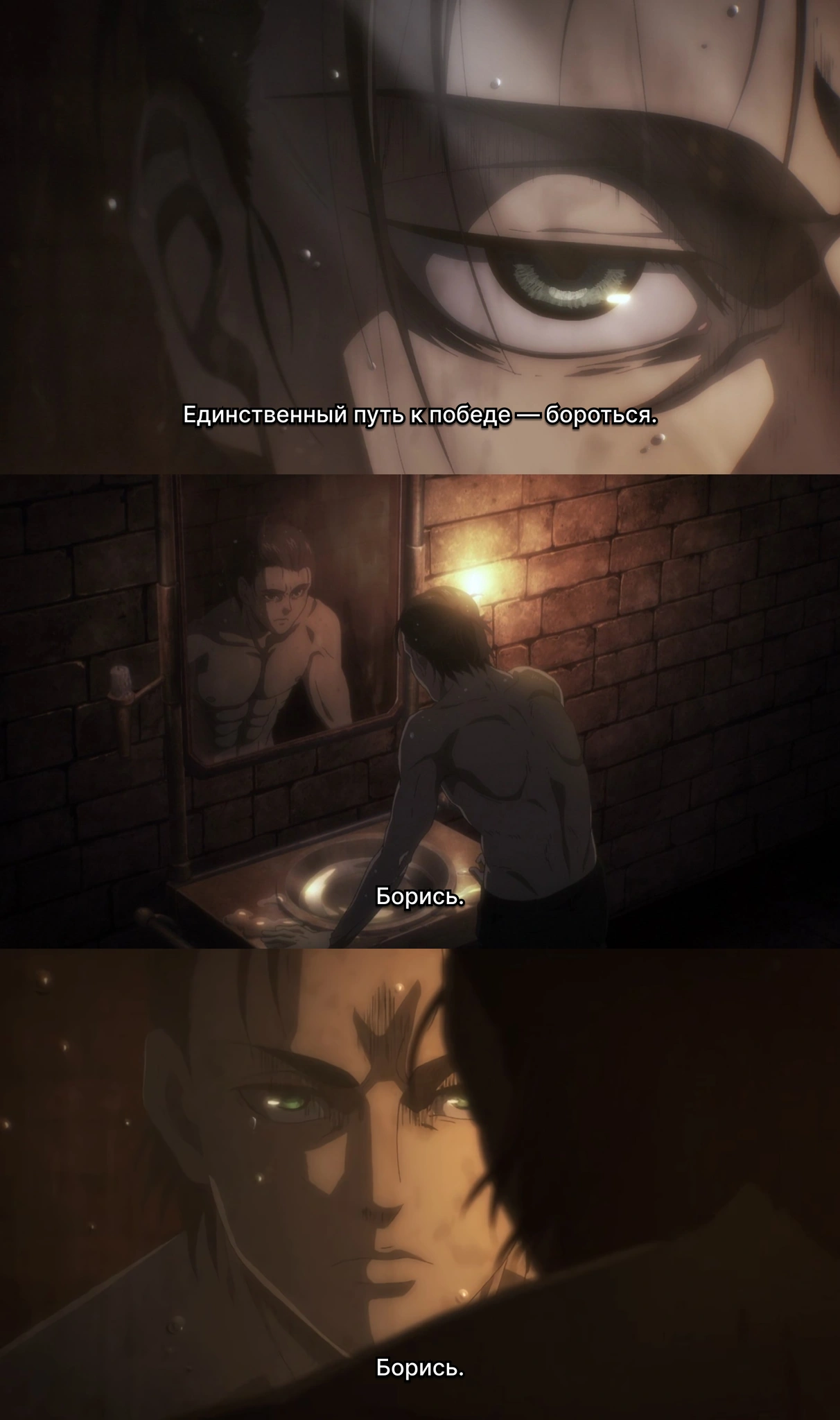 Эрену вновь и вновь приходилось терять близких, и это привело к глубокому чувству беспомощности. Его смех — это способ справиться с горем, защитная реакция на боль. Это не был обычный смех, а смех сквозь слёзы, наполненный отчаянием и чувством потери.
