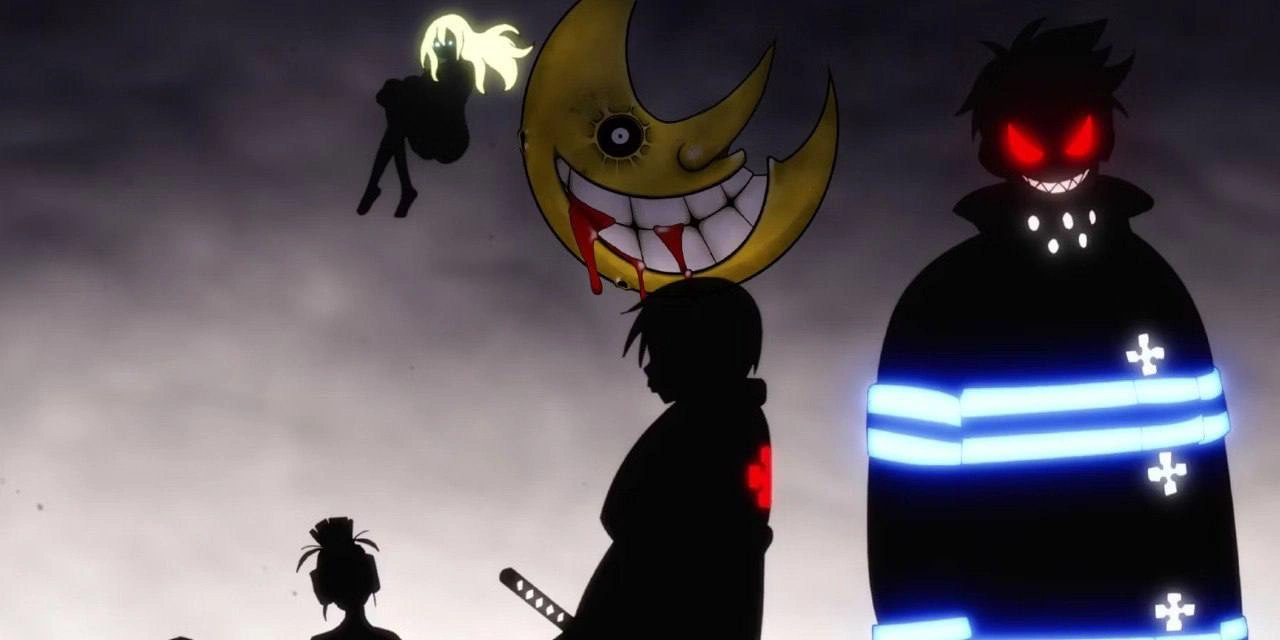 На то, что действия происходят в одной вселенной указывает многое. Например, Шинра, работающий в Пламенной бригаде №8, отсылает к любимому числу Кида в «Пожирателе душ» (его отца, Шинигами-саму, создал Шинра Кусакабэ, а Шинигами-сама создал дитя по образу и подобию Шинры).
