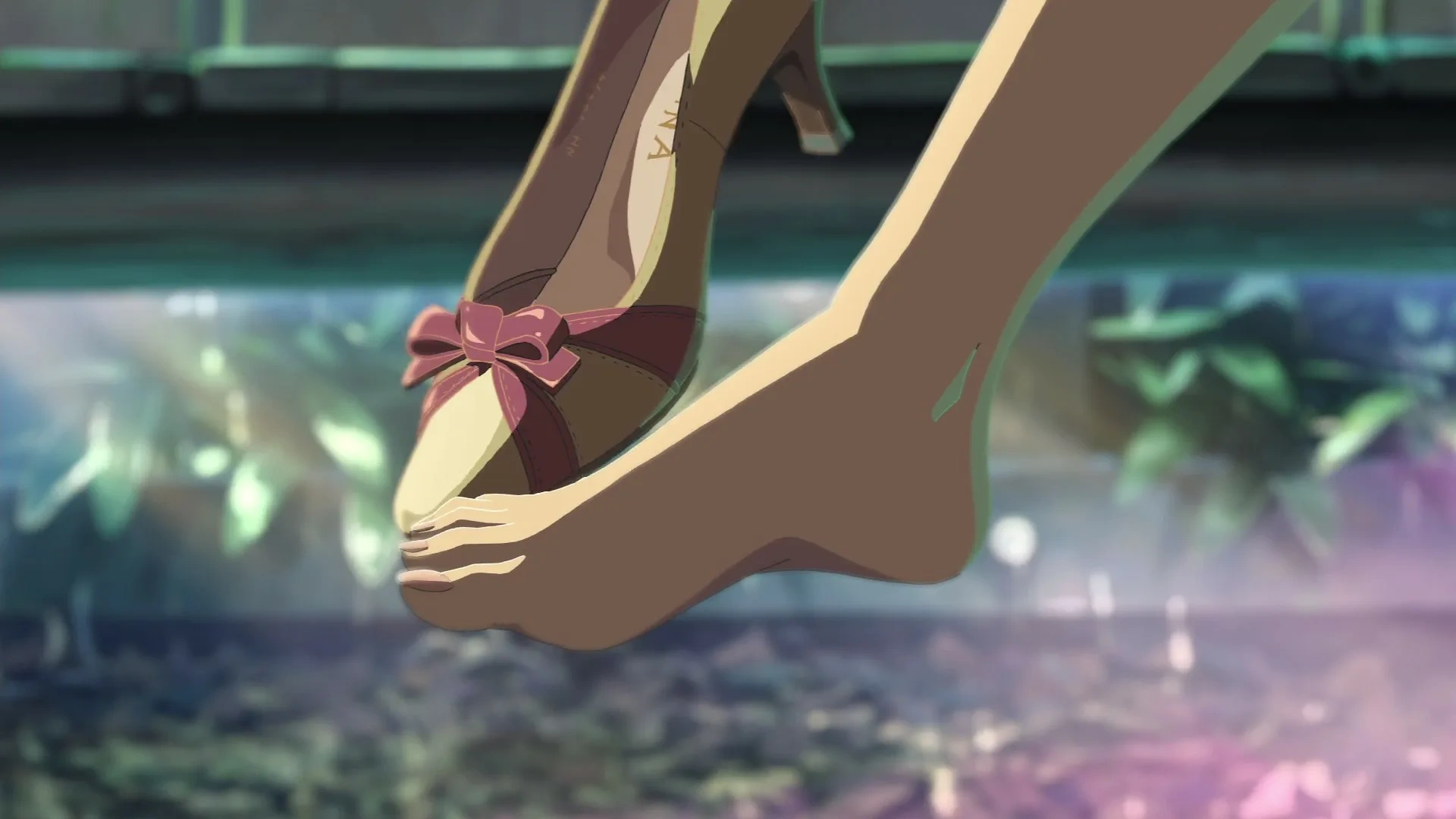 В фильме очень много кадров с акцентом на ноги и обувь (Юкино и Акизуки соответственно). Это и есть та самая метафора на то, что мы хотим «научиться ходить». И благодаря такому вниманию на деталях и спадает (даже почти полностью отпадает) необходимость в словах, потому как с нами делятся значением [ритма] посредством визуала.