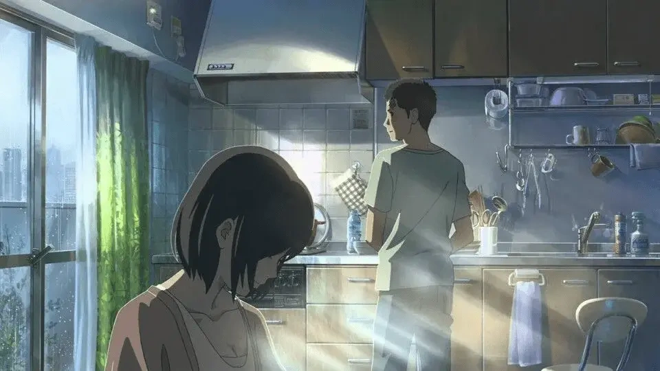 Из-за этих ритмов, полагаю, фильм и получился таким коротким (всего 46 минут, напомню). Подозреваю, что это может быть и не было задумано так изначально и не всегда было целью, но подобный хронометраж помогает провести параллель с японской формой стихотворения – танка. То есть у Синкая получилось (неважно по задумке или нет) найти нужную форму к аллегорическому макгаффину своего фильма. «Смысл произведения не предшествует его воплощению, а рождается из самой структуры. Даже если цель осознаётся постфактум, это не умаляет её ценности».