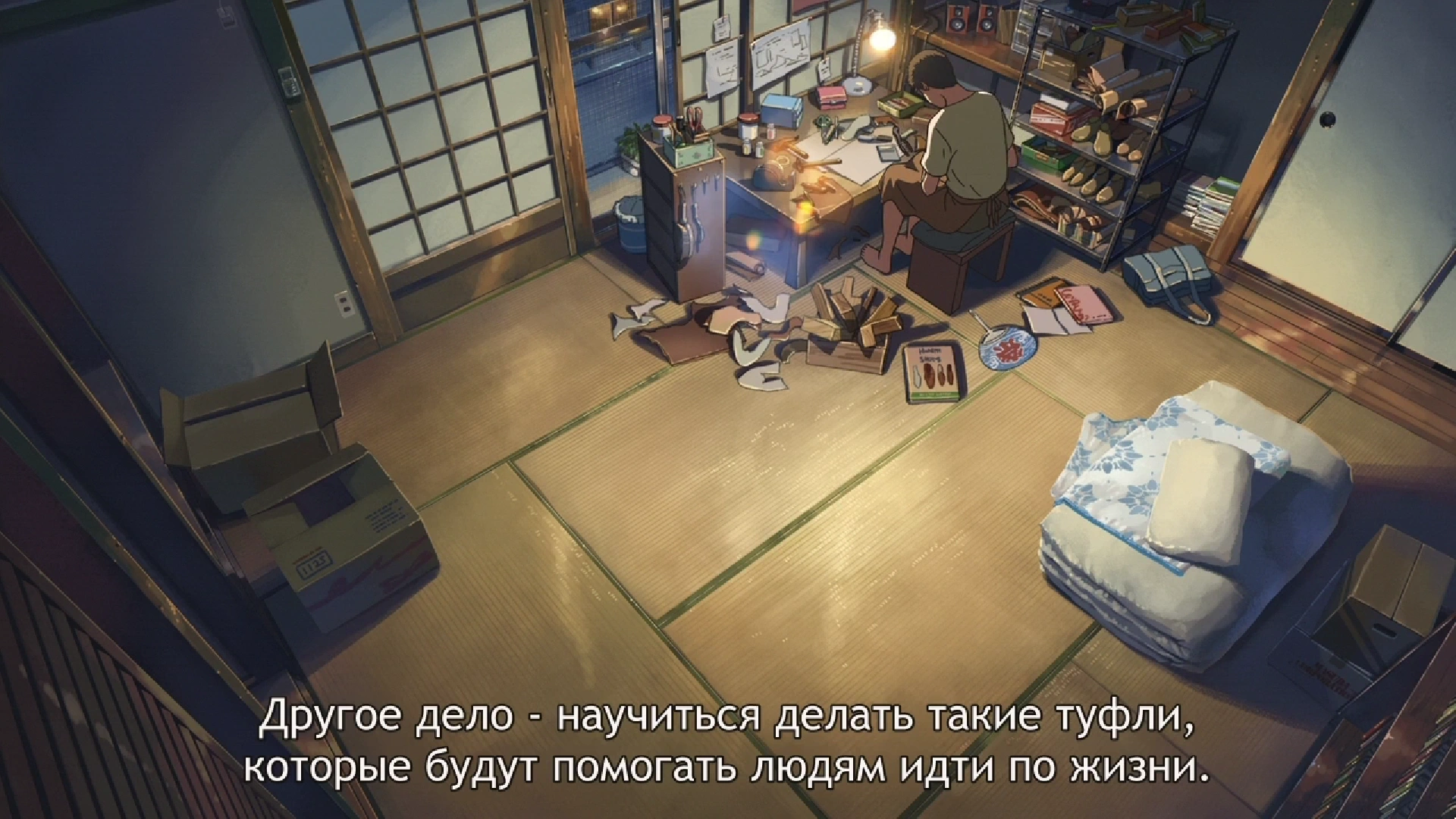 Вторым место будет квартира Акизуки. Именно там и находится его мастерская, где он осваивает своё ремесло сапожника в надежде помочь Юкино заново «научиться ходить». Символизм хоть и не большой, но действенный и действующий, чётко отображающий стремление персонажа.