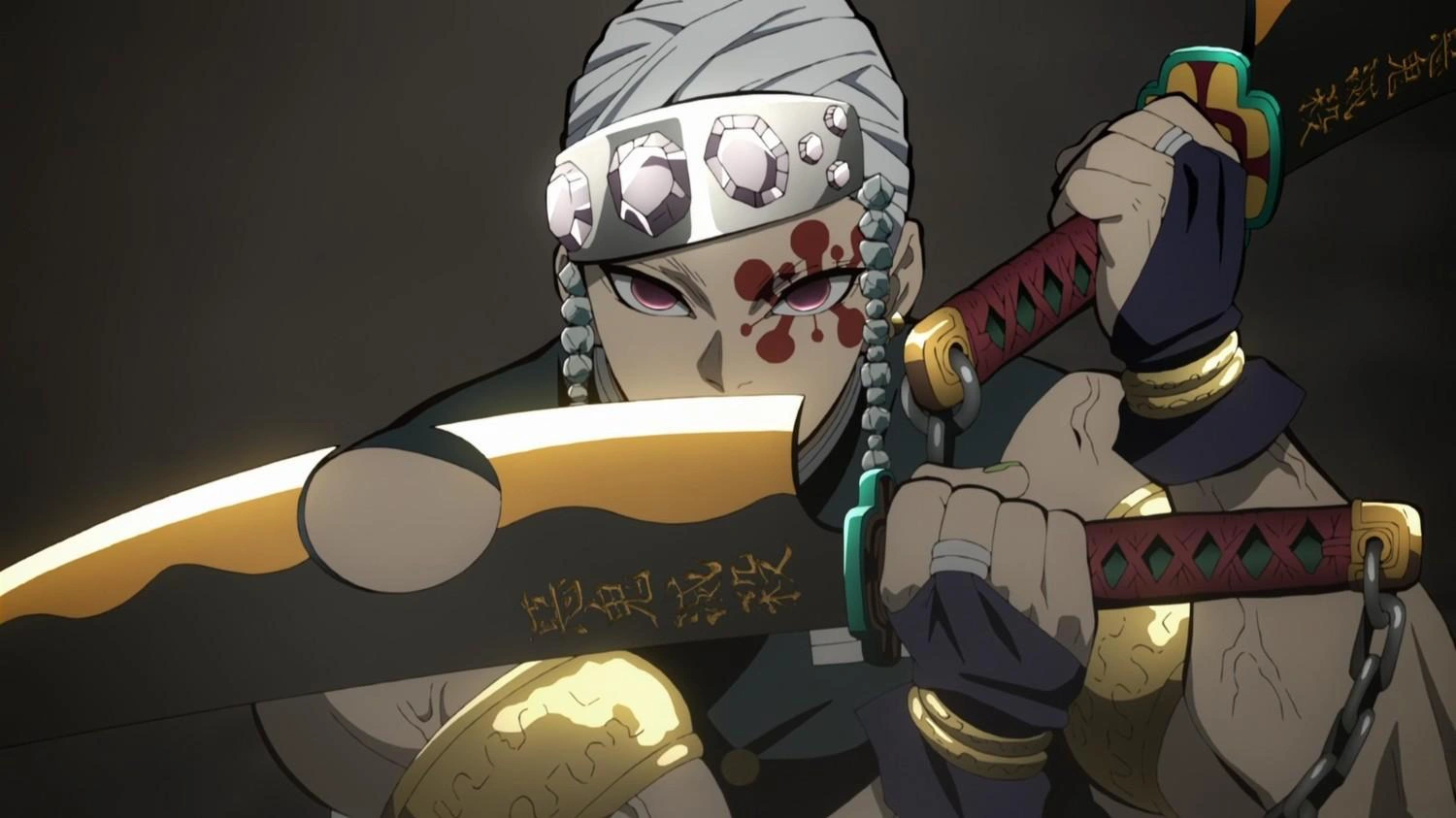 Тенген Узуй — не только хашира, но и бывший шиноби. Его тренировки для прокачки навыков ниндзя сделали его безжалостным бойцом, а также он обрёл невероятно ценные навыки, которые оказались спасительными в арке «Квартал красных фонарей».