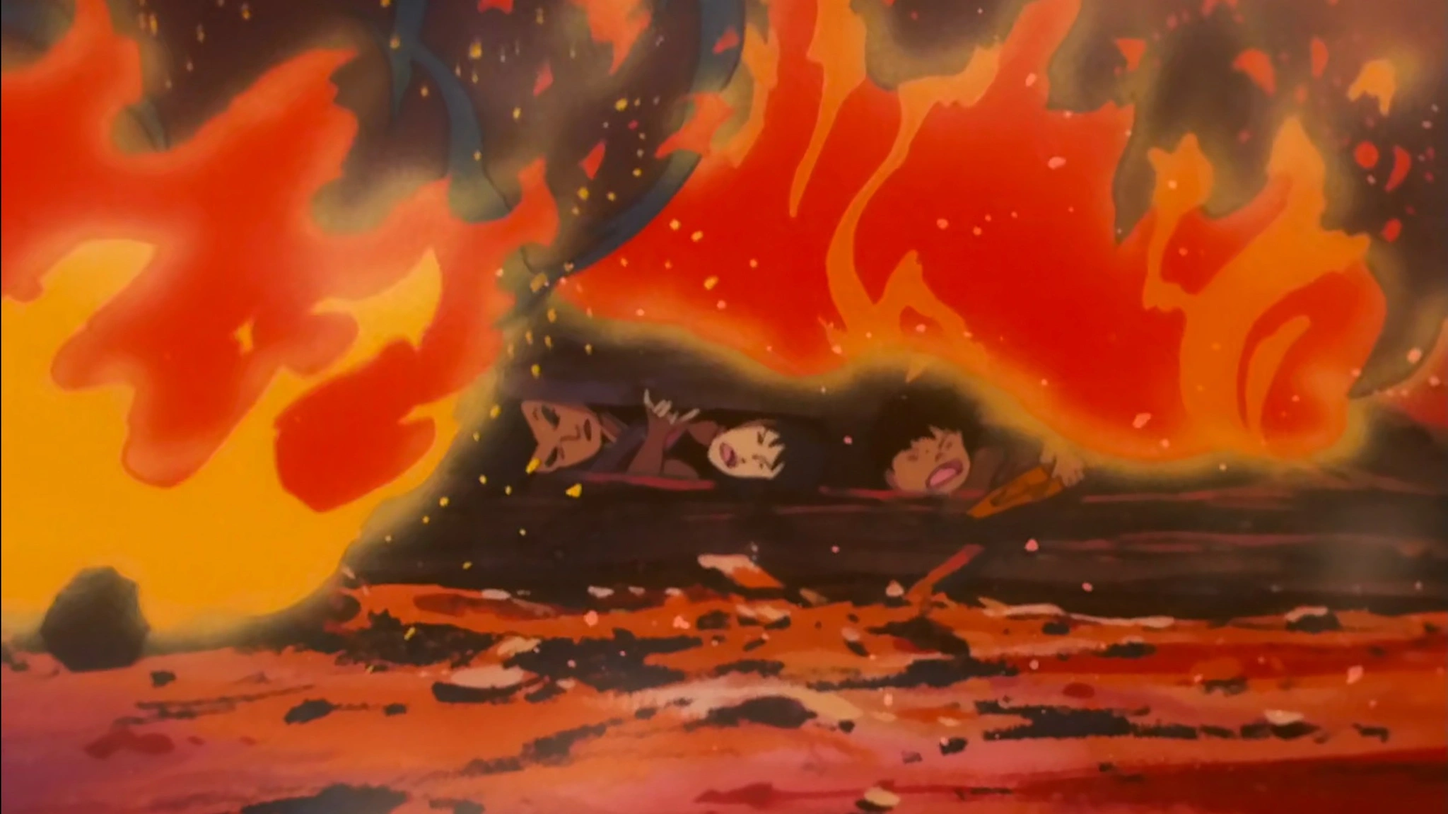 Ошеломленные разрушительной силой взрыва, мы понимаем, что это лишь начало долгого пути страданий. Ген выбирается из-под рухнувшего дома и отправляется на поиски семьи. Бежит по улицам, мимо бесчисленных обожженных людей, похожих на зомби. На месте дома он видит мать, пытающуюся спасти отца, сестру и брата, погребенных под обломками. Японские дома сделаны из дерева, поэтому они легко воспламеняются.