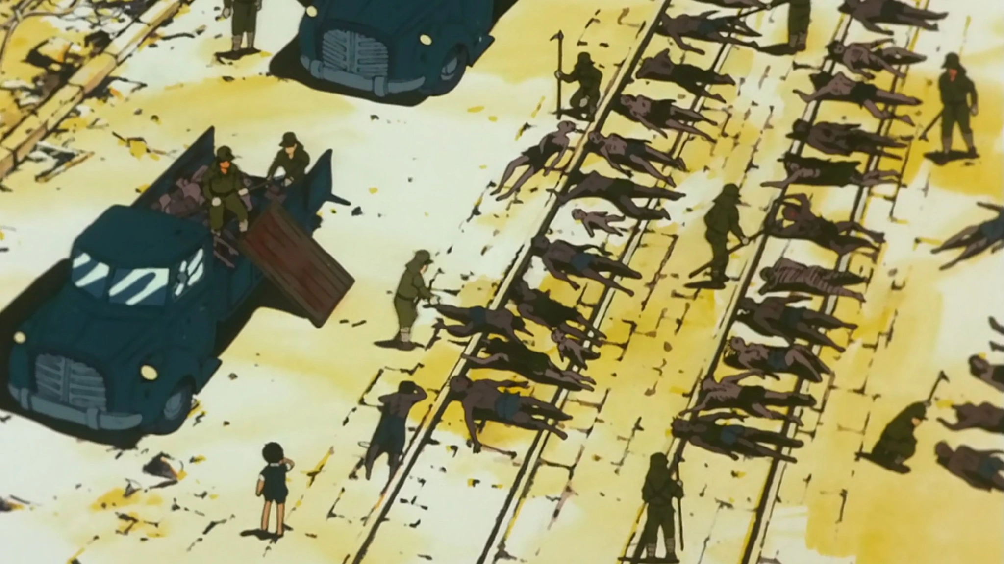 На контрасте с «мультяшной» рисовкой, создающей иллюзию беззаботности, обрушивается безжалостная реальность ядерного взрыва. В глазах выжигаются зрачки, плоть плавится под воздействием чудовищной жары, а некогда милые анимешные персонажи превращаются в кошмарных оживших мертвецов. Невозможно стереть из памяти образ девочки, раздавленной бетонной плитой, на чьем лице застыл жуткий контраст детской безмятежности и неминуемой гибели. «Конец детству», принесенный атомным апокалипсисом, служит суровым напоминанием о хрупкости беззаботной жизни и необходимости ценить каждый ее миг.