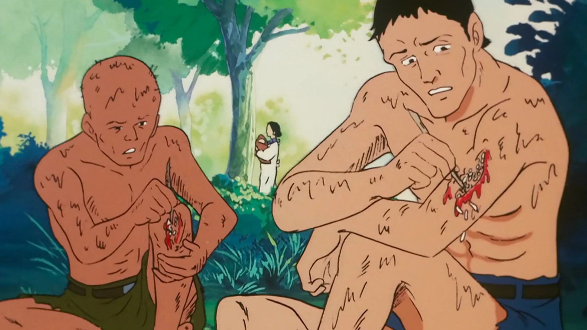 Можно продолжать, но суть ясна. Страдания после бомбардировки продолжались долгие годы из-за радиации. «Босоногий Гэн» с мучительной правдивостью показывает выживание Гena в разрушенной Хиросиме и его столкновение с бесконечными людскими мучениями. Это взгляд на историю, который сложно передать иначе, чем анимацией.